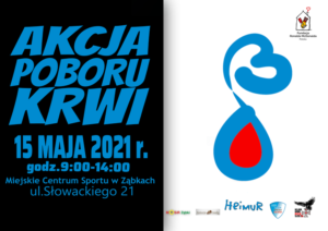 Najbliższa akcja poboru krwi odbędzie się już w najbliższą sobotę 15 maja w godz. 9:00-14:00 na parkingu przed Miejskim Centrum Sportu w Ząbkach przy ul. Słowackiego 21 (Pływalnia).