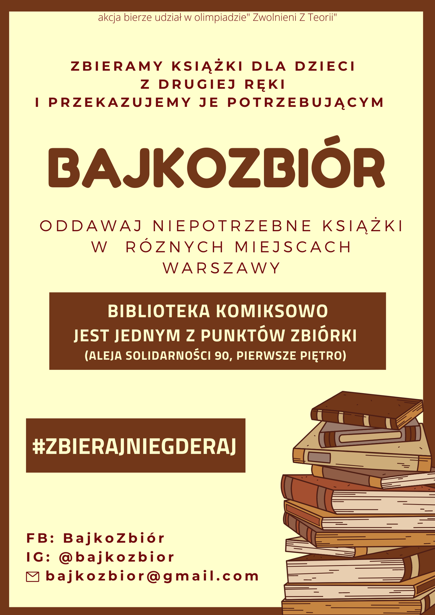 Warszawska zbiórka „Coś dobrego” pod hasłem „Mniej rzeczy, więcej dobroci” odbywa się dzięki współpracy z inicjatywą Ubrania do oddania. Akcja trwa od 29 marca do 30 sierpnia za pośrednictwem platformy Ubrania do oddania. Darowizny pozwolą na zakup inkubatora dla zwierząt do szpitala w Schronisku Na Paluchu.