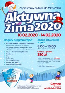 Informujemy, że na terenie Miasta Ząbki zorganizowano wypoczynek dzieciom i młodzieży w okresie ferii zimowych od 10 lutego 2020 r. do 23 lutego 2020 r. w ramach akcji „Zima w mieście 2020”.